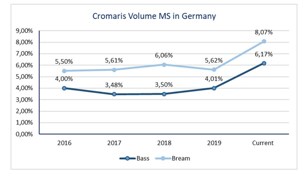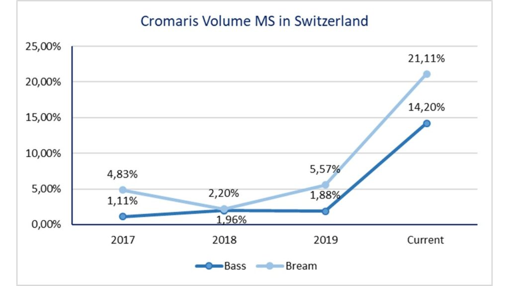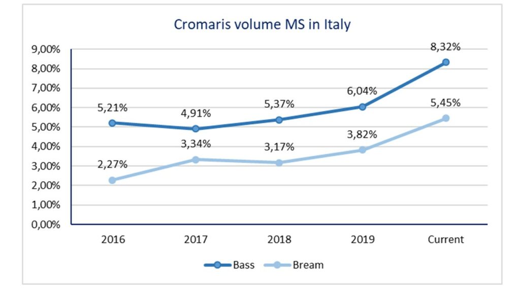 Italy is the world’s biggest market for sea bass and seabream and the main market for Cromaris as well, where the company achieves biggest share of its revenues. Cromaris has increased market shares in sea bass and seabream in Italy, Germany and Switzerland in 2020.