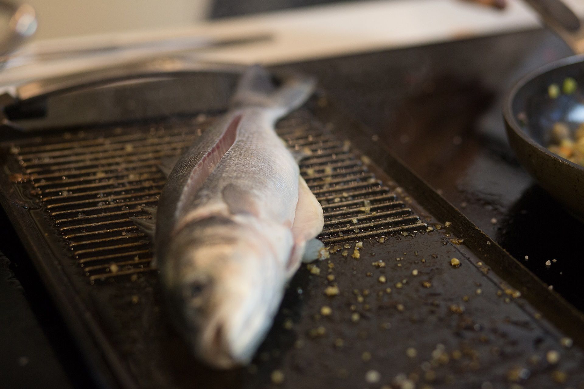 Napomena: Ako pečete ribu na tavi, obvezno je dobro posušite, a na tavu s malo ulja stavite nekoliko prstohvata krupne soli da spriječite lijepljenje za dno tave. U tom se slučaju riba dodatno ne soli.