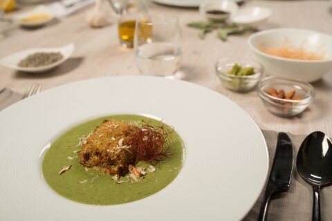 Filet brancina s hrustom i kremom od blitve
