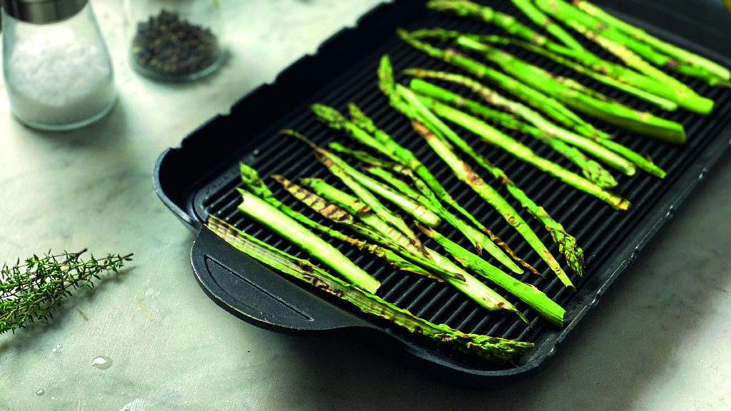 Nel mentre bollite le lenticchie in acqua salata. Pulite ed eliminate l’estremità più dura degli asparagi. Tagliateli per la lunga e grigliateli per qualche minuto, dovranno risultare croccanti.