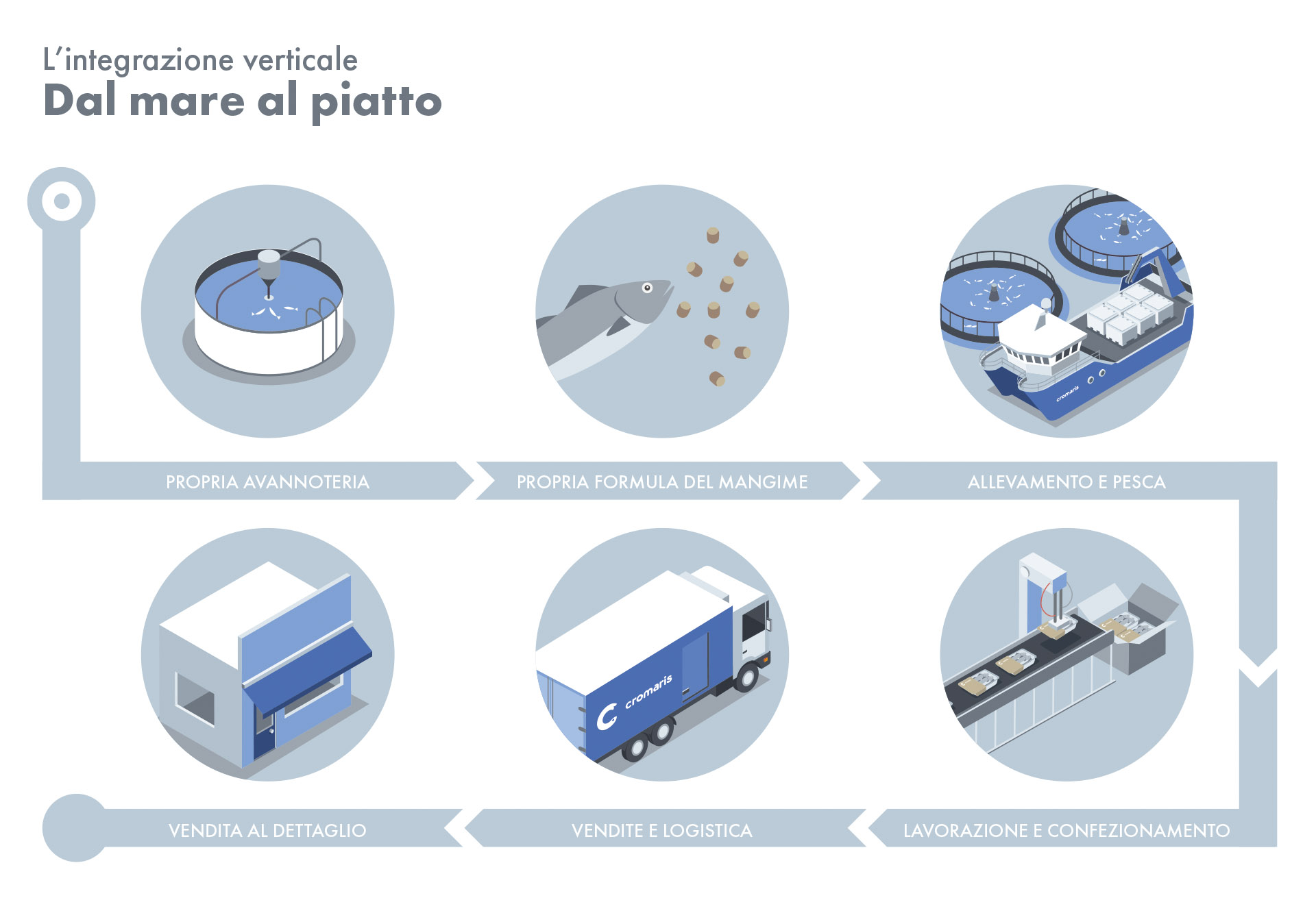 Nostra catena del valore integrata verticale garantisce il nostro impegno per la freschezza, la sicurezza alimentare e la massima qualità – dalla propria formula del mangime per pesci, avannotteria, allevamenti e impianti di lavorazione e alle vendite al dettaglio.